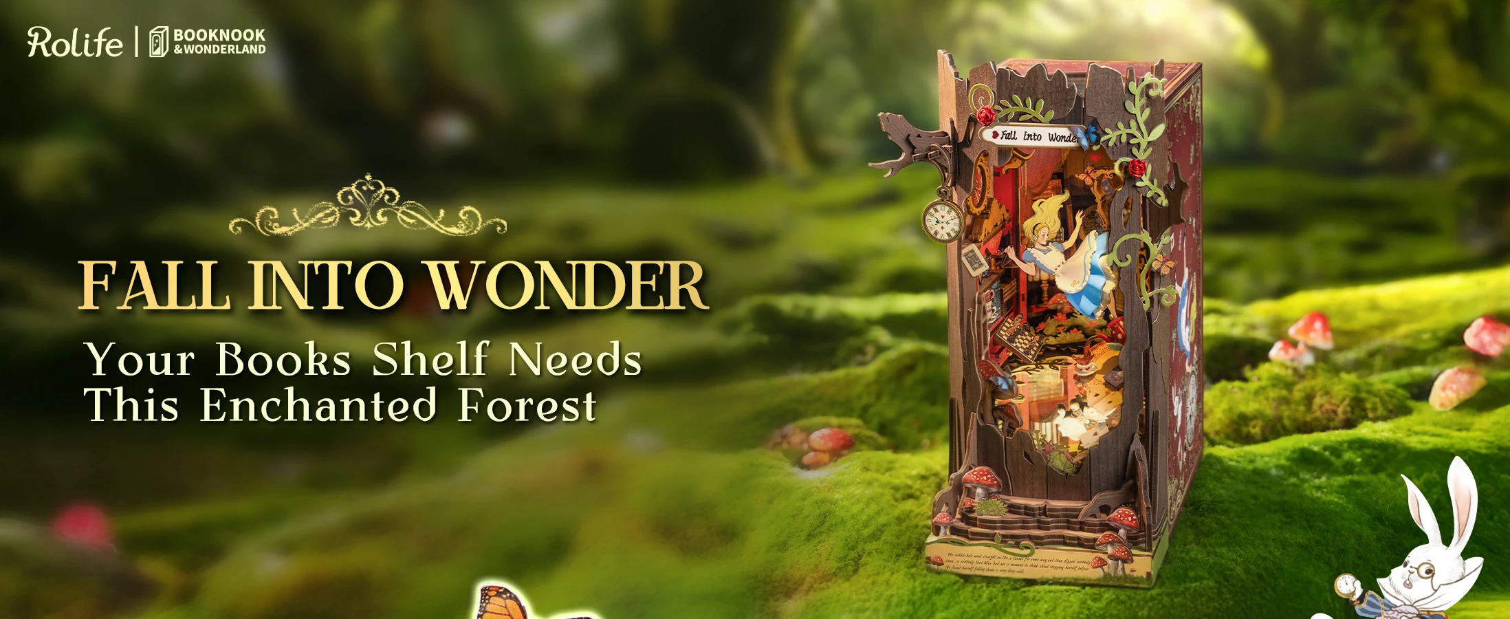 Viaje pelo clássico mundo de Alice no País das Maravilhas com esta miniatura Book Nook DIY encantadora e iluminada! Acompanhe a queda de Alice pelo buraco do coelho, com relógios flutuantes, iluminação LED sensível ao movimento e efeito de espelho que cria profundidade infinita.